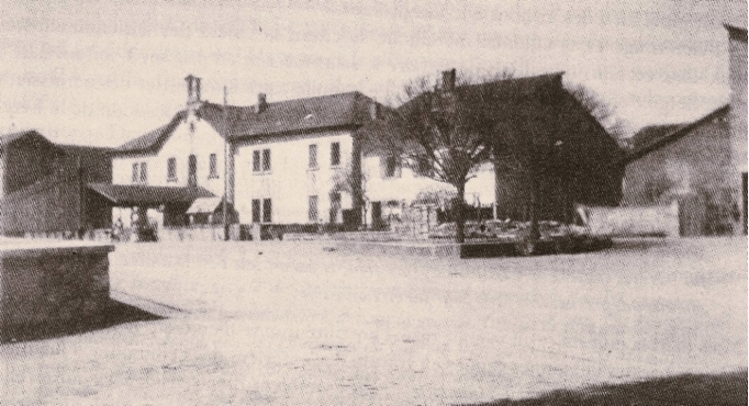 La place du chef-lieu en 1900. À gauche la maison de Célestin Peillex, avec, à l’arrière, la piste du jeu de quilles. À droite la fruitière.