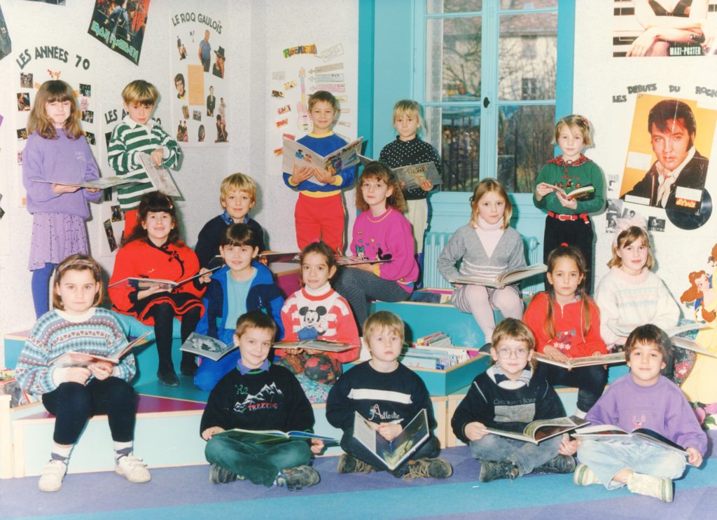 1992. Les écoliers posent dans le nouveau local d’Espage, ouvert aux enfants de l’école accompagnés de leur enseignant pendant le temps scolaire.