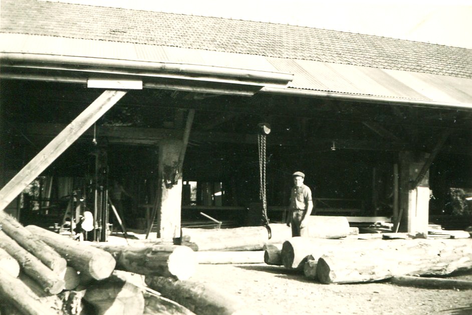 Les débuts de la scierie en 1945 : Lucien Pomel.