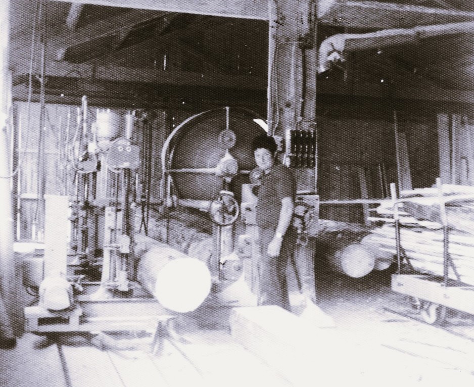 L’intérieur de la scierie en 1970