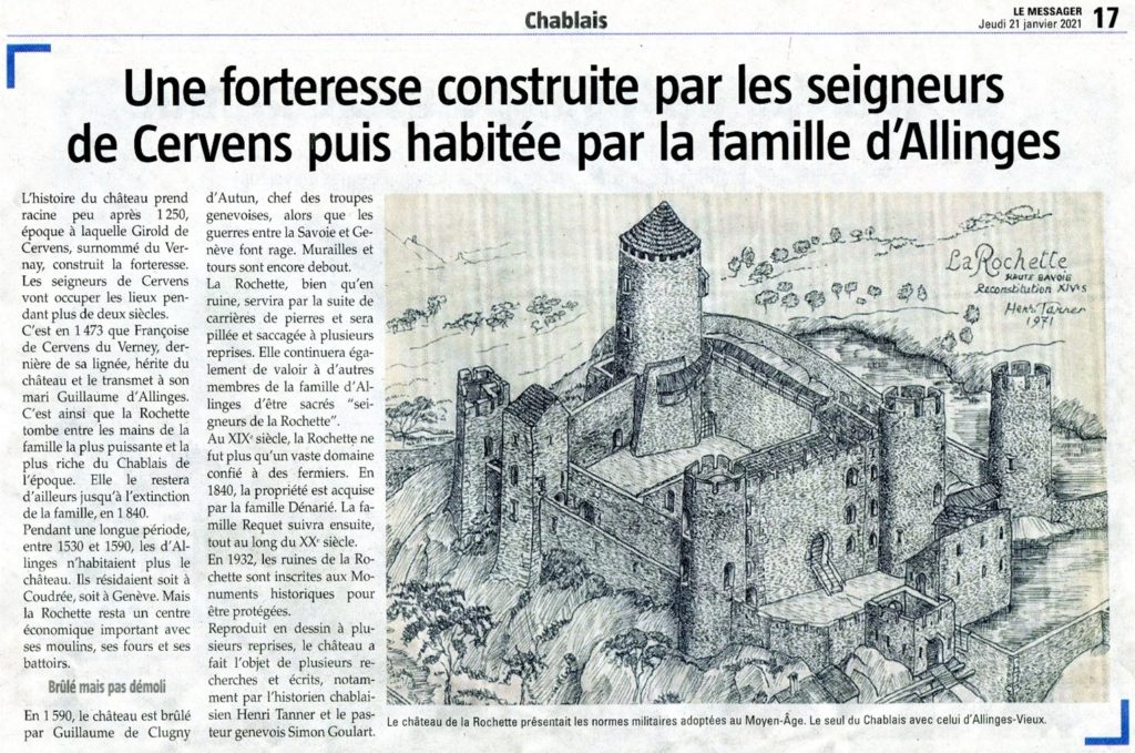Aujourd’hui situé sur la commune de Lully, le Château de la Rochette a été proche de Cervens par son histoire au Bas Moyen-âge : selon une légende, un mystérieux souterrain l’aurait peut-être relié au Château de Cervens.
