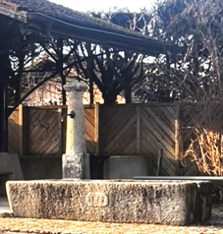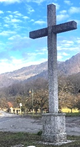 De gauche à droite : La croix Blanchard du chef-lieu, le bassin de Pessinges, un escalier en granit.