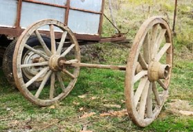 Charron : Une des nombreuses tâches du charron était la fabrication de roues à moyeu, légères et résistantes en bois, à la taille adaptée au type de véhicule construit. Le cerclage de leurs jantes par une bande de métal, une étape essentielle pour terminer la fabrication d’une roue adaptée à une route en dur. Cette opération consistait grosso modo à enserrer la roue dans un bandage de fer, placé à chaud au rouge sur le bois du pourtour circulaire. Le fer en état dilaté se contractait en refroidissant à la température ambiante, le rétrécissement assurant le serrage des pièces simplement assemblées.