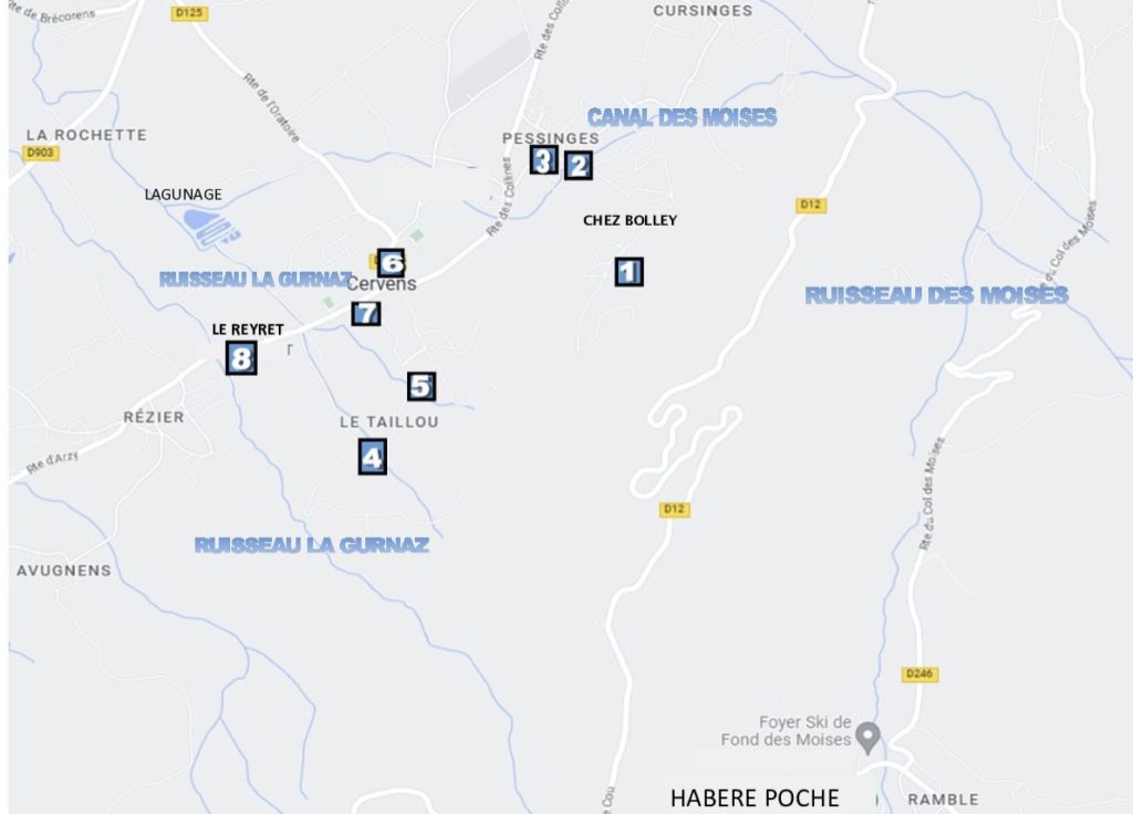 Le ruisseau des Moises est issu de deux sources situées près de la route qui mène de sur le Mont Draillant aux Moises.